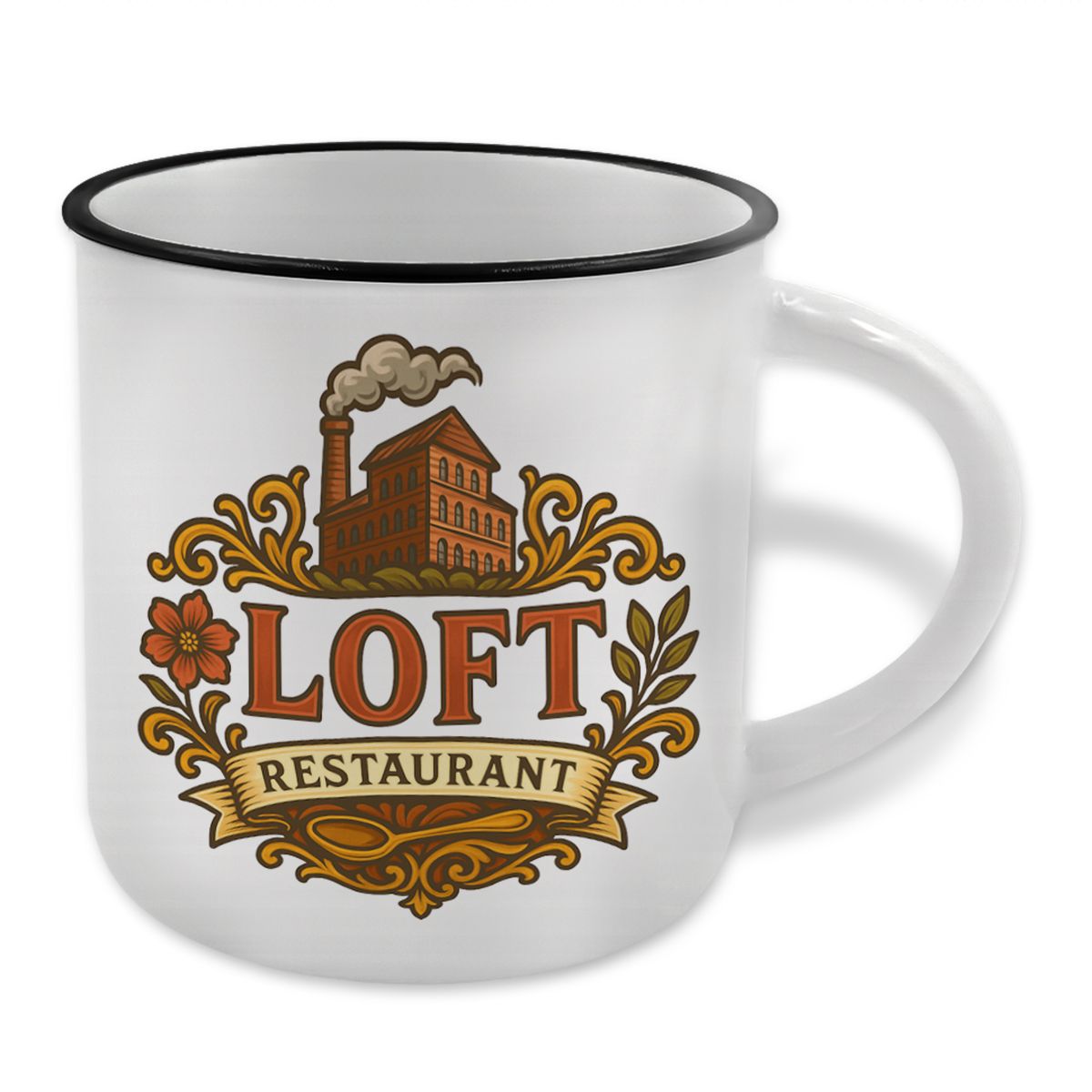 Kubek stylizowany na kultowy i ponadczasowy styl kubków emaliowanych, tym razem w wersji ceramicznej. Subtelny czarny i zaokrąglony rant oraz zgrabna forma uchwytu nadaje temu wydawało by się klasycznemu kubkowi, wyjątkowy design.