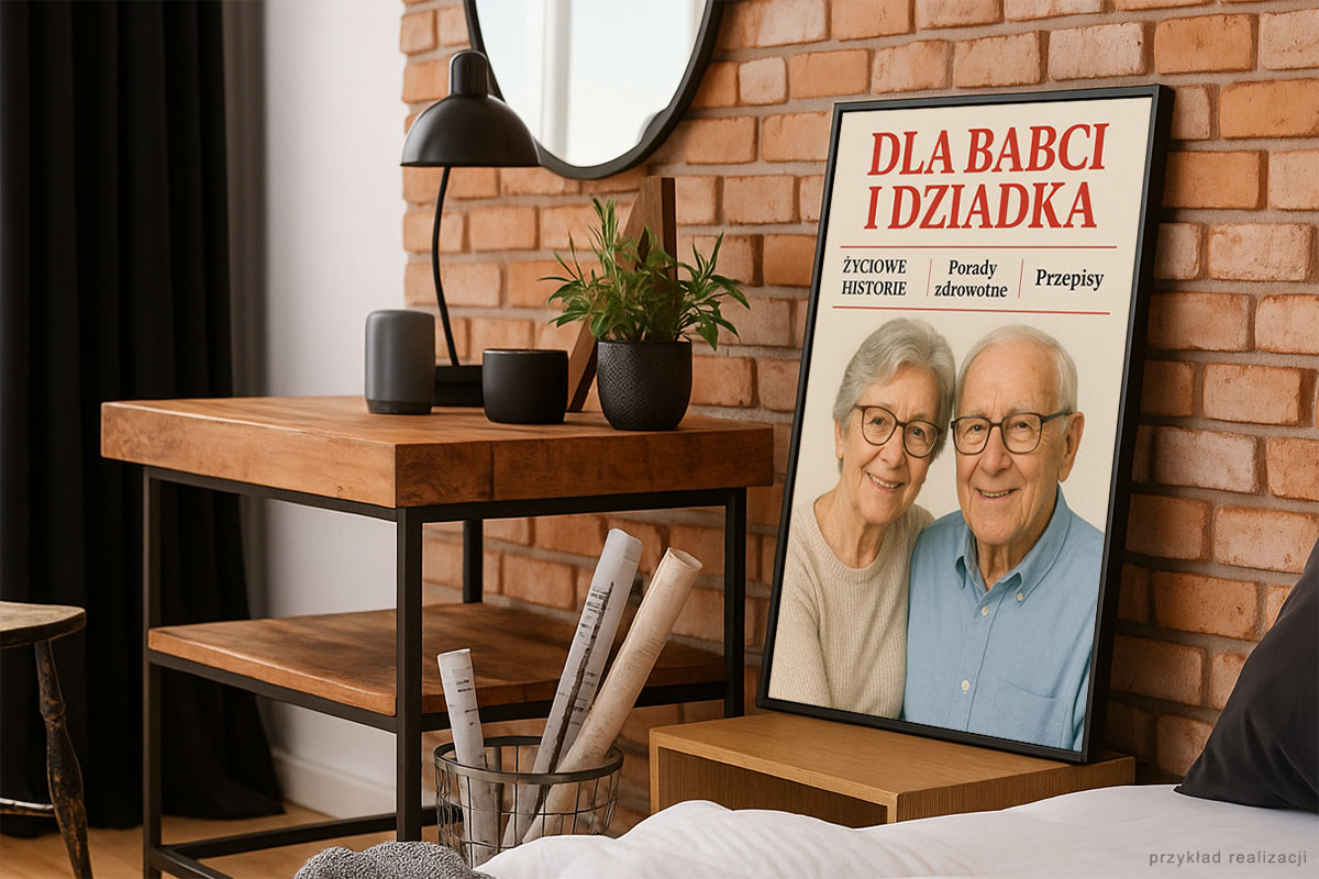 - drukujemy, oprawiamy i wysyłamy do Ciebie okładkę, którą możesz powiesić na ścianie lub obdarować nią kogoś bliskiego.