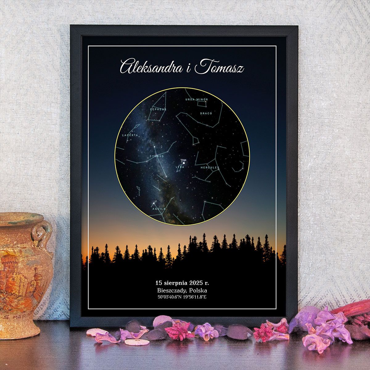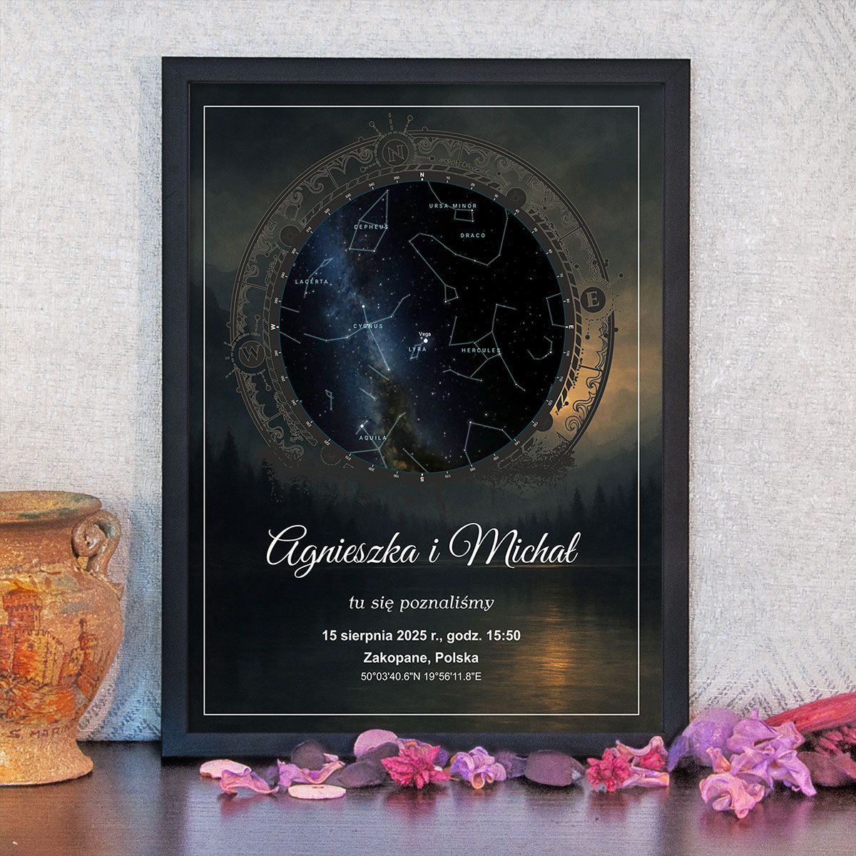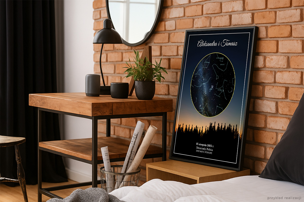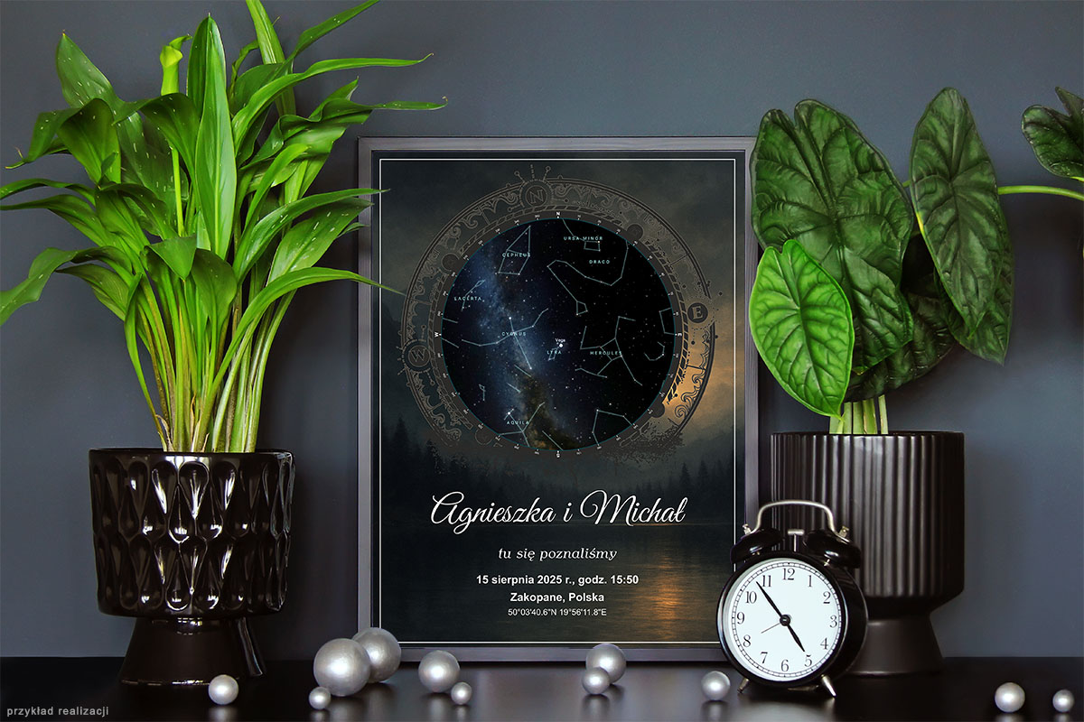 niepowtarzalny plakat przedstawiający dokładny układ gwiazd z wybranego