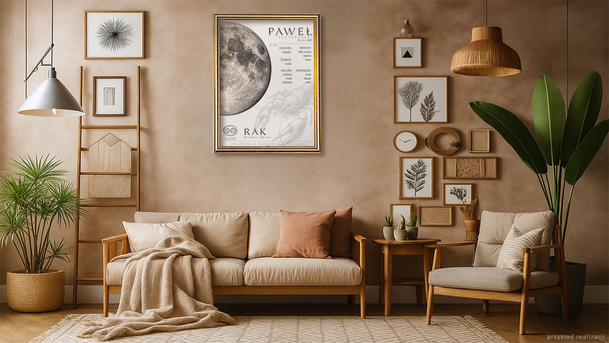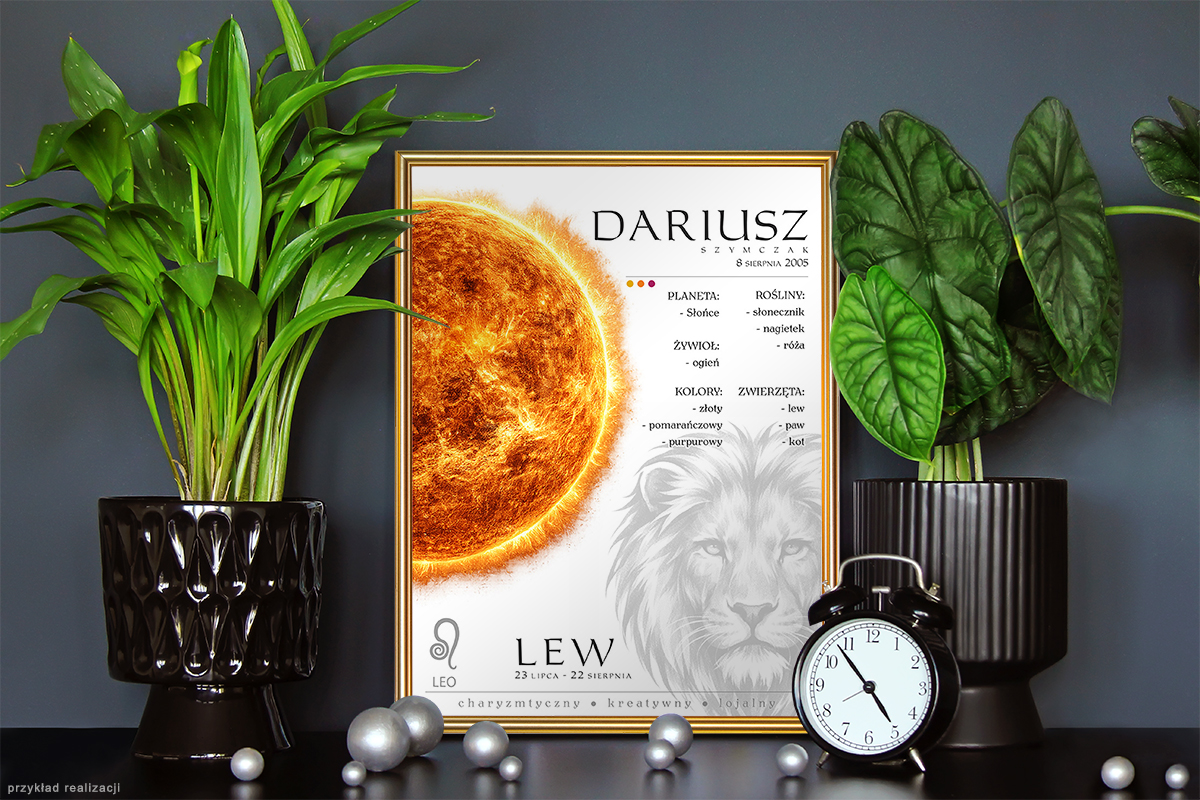 W prosty i efektowny sposób możesz opowiedzieć kilka słów o wyjątkowej osobie i związanym z nią dniem. Znak zodiaku, imię, wiązane z nim cechy osobiste czy charakteru lub żywioły, konstelacje gwiazd, sprawiają, że plakat stanie się interesującą podróżą w czasie i wyjątkową pamiątką, która bez wątpienia wzbudzi emocje.