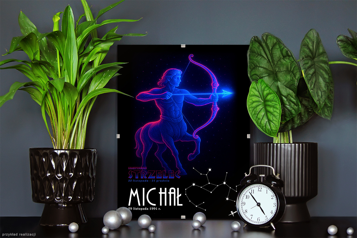 W prosty i efektowny sposób możesz opowiedzieć kilka słów o wyjątkowej osobie i związanym z nią dniem. Znak zodiaku, imię, wiązane z nim cechy osobiste czy charakteru lub żywioły, konstelacje gwiazd, sprawiają, że plakat stanie się interesującą podróżą w czasie i wyjątkową pamiątką, która bez wątpienia wzbudzi emocje.